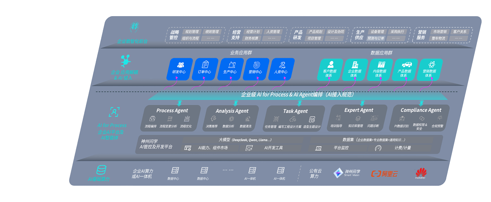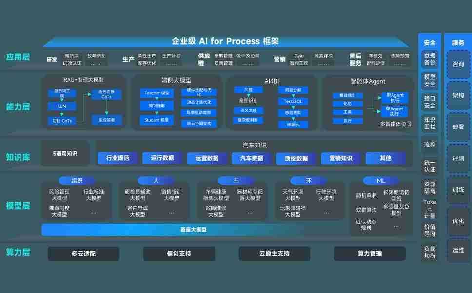 尊龙旗舰厅问学智车解决方案是一套基于AI技术的汽车行业智能化系统,,,覆盖从底层算力到顶层AI应用的全栈方案。。。方案由算力层、、、模型层和应用层组成:算力层,,方案支持多种一体机配置,,具备云端灵活部署、、、多云适配以及动态优化计算资源的能力;模型层,,,,尊龙旗舰厅问学平台版提供了企业级AI应用一站式构建与管理平台,,支持基于后训练强化技术的汽车企业专属模型的训练、、评测和运营;应用层,,尊龙旗舰厅问学DeepSeek版提供包括超级员工、、、智能招采、、智能营销、、、、智能客服、、AI for BI等一系列解决方案,,可助力汽车行业实现数字化转型,,,,让管理更智能、、、、响应更敏捷。。。。